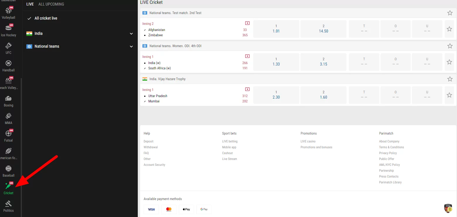 यदि आपको क्रिकेट की अच्छी समझ है और मैदान पर होने वाली घटनाओं का विश्लेषण कर सकते हैं, तो लाइव सेक्शन में कुछ दांव लगाना सुनिश्चित करें । सही अनुभव के साथ, यह अधिक लाभदायक और सुरक्षित हो सकता है ।