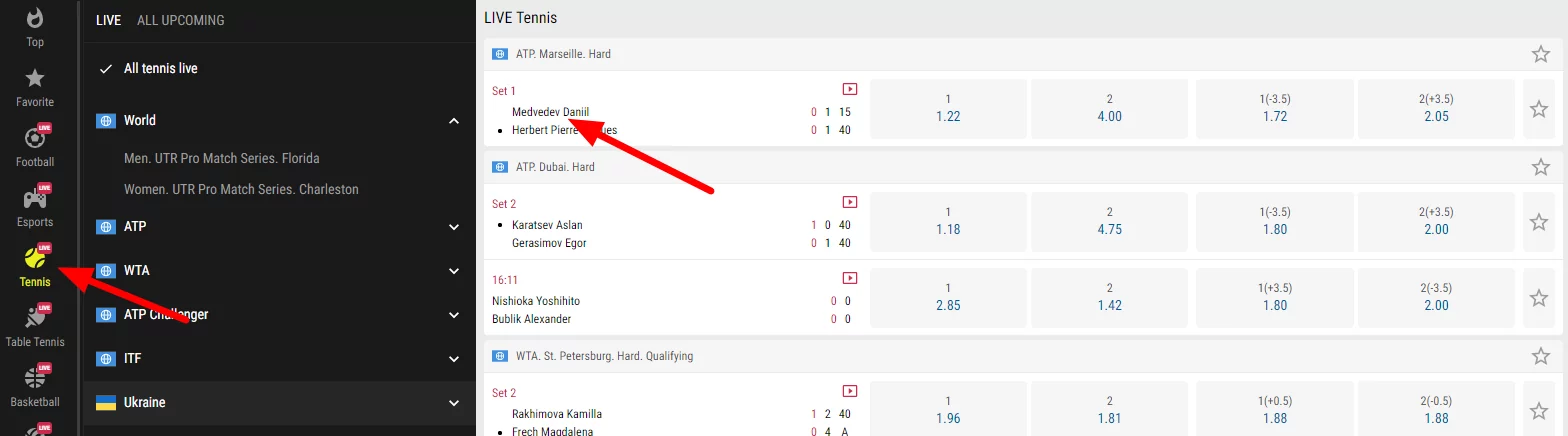 परिमैच इंडिया में टेनिस पर बेट इवेंट की शुरुआत से पहले और बाद में दोनों जगह लगाए जा सकते हैं। दूसरे केस में, आपको लाइव गेम्स सेक्शन ओपन की आवश्यकता होगी। टेनिस कोर्ट पर होने वाली इवेंट के आधार पर यहां के अंतर लगातार बदलते हैं।